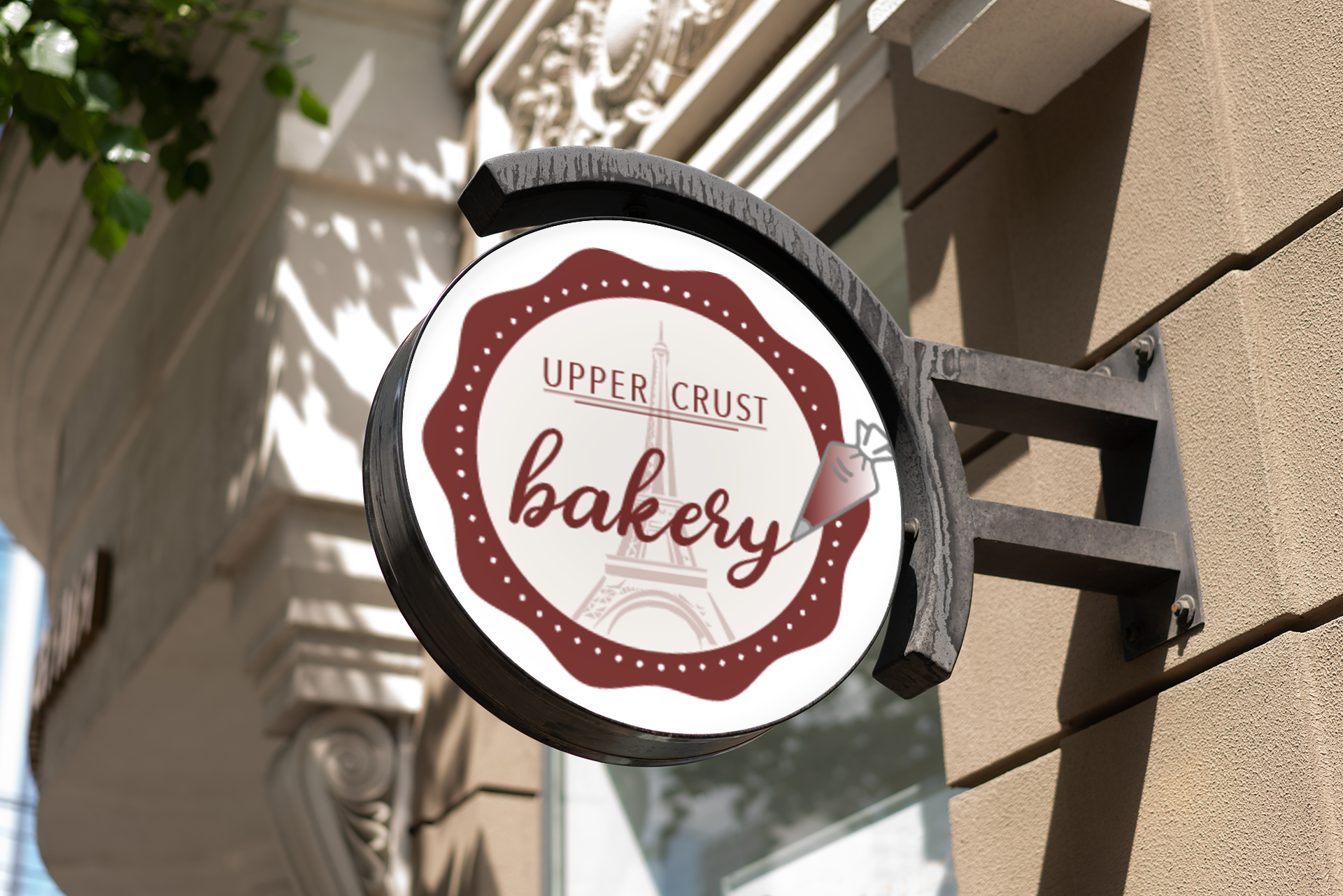 For Upper Crust Bakery, we crafted a distinctive logo that captures the warmth and artisanal quality of the brand, while also paying homage to Parisian charm. The design features a circular emblem in a rich, deep red, evoking a sense of comfort and tradition. A subtle illustration of the Eiffel Tower in the background, paired with a piping bag graphic, connects the bakery’s identity to the elegance and culinary excellence of Paris. The combination of script and modern typography ensures readability while adding a touch of sophistication. When applied to branded materials, such as coffee cups, this logo not only reinforces the bakery’s identity but also transports customers to the romantic streets of Paris with every sip.